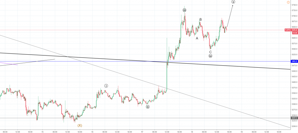 From yesterday’s open at $3318.6 the price of Bitcoin has increased by 9.72% measured to the current levels at $3640.9. The price did go slightly higher to $3691.6 today but since the price has retraced to the levels on which it is currently sitting.
